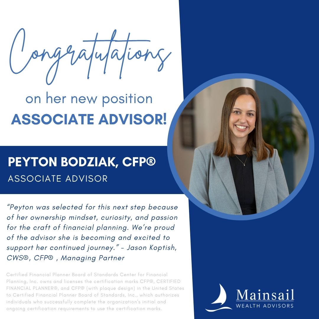 Peyton has been an integral part of the Mainsail team for the past three years, starting as an intern and growing into a trusted full-time team member. We’re excited to officially share her promotion to Associate Advisor—a reflection of her dedication, development, and impact.